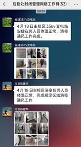 校园封闭防控期间,后勤处带领服务外包队伍忠于职守、甘于奉献,及时调整后勤运行方式,采取轮岗值班的形式确保了学校安全稳定运行。为及时全面掌握后勤疫情防控和服务保障工作落实情况,后勤处第一时间建立了校园封闭管理工作群,明确各科室、各单位网格员,要求各单位每天将工作落实情况在群里进行“日报告”。同时,为了动态掌握员工健康情况,各科室依据人员底册,通过线上小程序每日统计个人健康信息,及时掌握每位员工身体状况,切实加强人员管理。