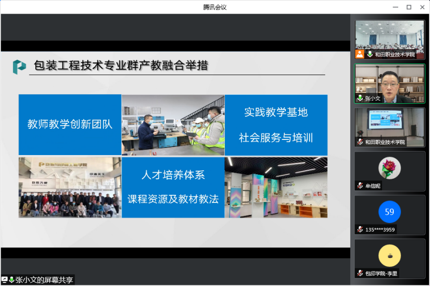 在线专家讲座环节由张小文做“产教融合实施路径与举措”讲座,从高职院校深化产教融合的政策背景、职业大学产教融合实践模式、包装工程技术专业群产教融合举措和产教融合几点思考四个方面激情洋溢、深入浅出的进行了剖析,受到与会领导、老师和学生的一致好评。互动环节老师踊跃提问,现场氛围活跃。