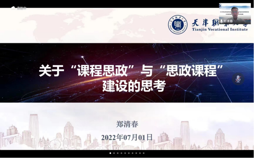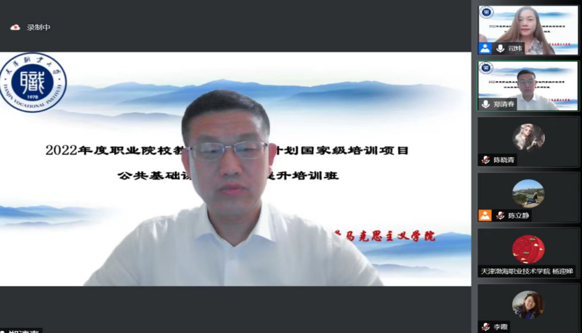 7月1日下午,在庆祝中国共产党成立101周年之际,beat365中文唯一官网校长郑清春深入马克思主义学院国培项目培训班,在线为培训学员作了题为“‘课程思政’与‘思政课程’建设的思考”专题讲座。马克思主义学院党总支书记主持会议,国培项目培训班全体学员及beat365官网思政课教师代表参加了会议。