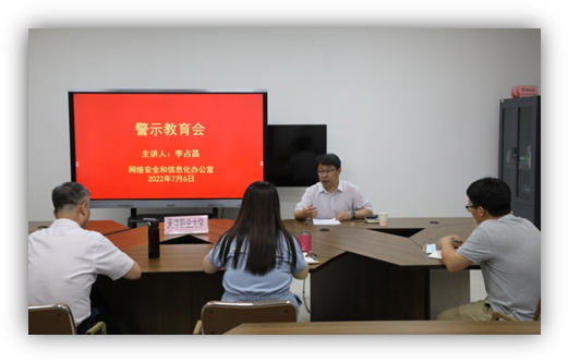 为进一步深入学习贯彻习近平总书记关于网络强国的重要思想,高标准推进“双高计划”建设,规范信息化项目管理,提升服务师生水平,强化廉洁纪律意识,2022年7月6日,网信办在图书馆118会议室组织开展信息化项目建设系列培训。会议邀请校纪委办负责人及审计处、国资处相关同志围绕廉政警示教育、项目招标采购、合同审计工作开展宣讲培训。网信办全体人员参加了培训。
