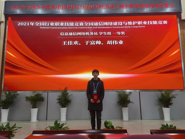 学生于富帅在全国通信网络建设与维护职业技能竞赛中获得一等奖