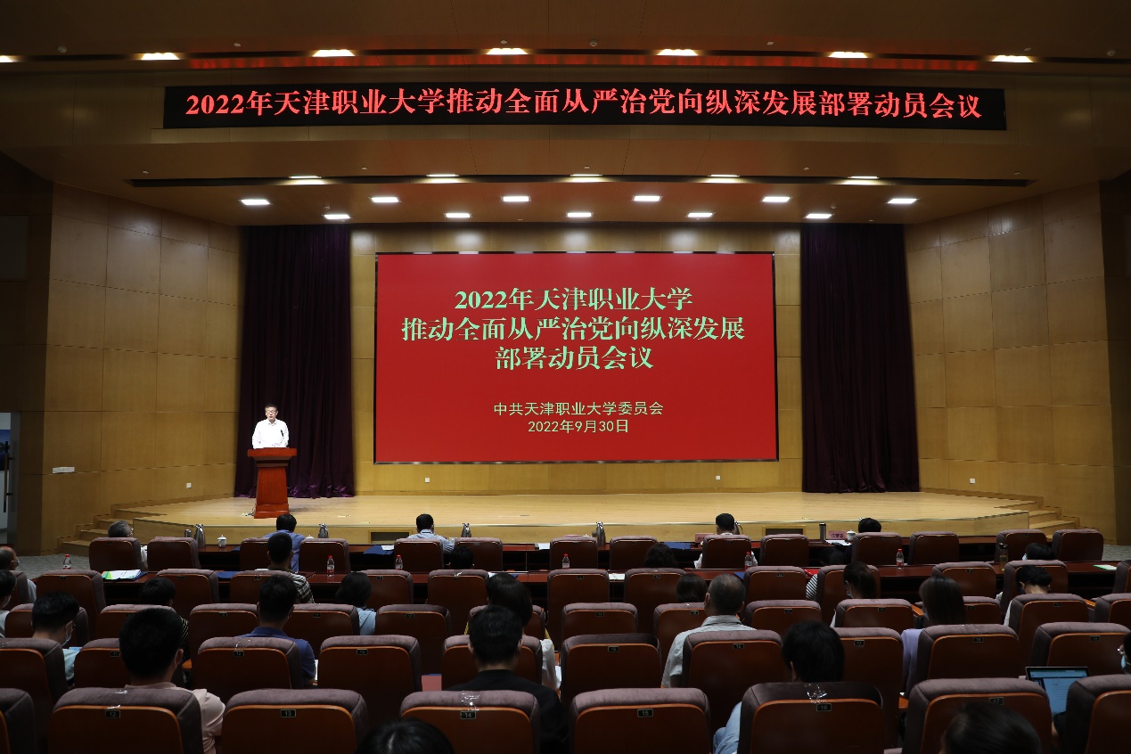 9月30日,beat365官网召开推进全面从严治党向纵深发展工作部署动员会议,学习领会习近平总书记关于全面从严治党的重要论述和市第十二次党代会关于全面从严治党的部署安排,认真贯彻落实全市和教育系统推进全面从严治党向纵深发展工作部署会议精神,运用典型案例开展警示教育,以管党治党的新成效迎接党的二十大胜利召开。会议由校党委副书记王海龙主持,校党委副书记、校长郑清春做重要讲话,全体校领导出席。