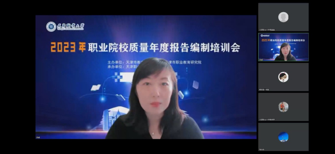 今年天津市对质量年报编制和报送工作进行了改革,不再由市教委和市教育科学院直接接收、审核各校的质量年报,而是建立专门的质量年报编制队伍,成立了由教委职教处领导参加的编写团队,并分为中职、高职6个小组,由6所学校牵头,天津市质量年报的编制也将由团队共同完成。beat365中文唯一官网负责天津市高职1组工作的联络、审核,负责全市质量年度报告的框架起草和全市质量报告的部分编制工作。为了做好这项工作,beat365中文唯一官网职教所积极协调、沟通,邀请中国教育科学研究院职业与继续教育研究所、《中国职业教育质量年度报告》编委宗诚博士进行培训,并和天津市教科院沟通确定召开本次线上培训会。