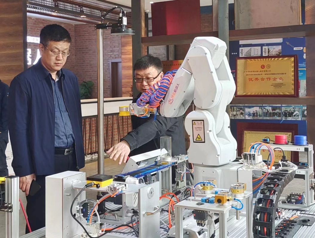 校长郑清春详细了解了博诺智创所取得的发展成果,与博诺智创接待调研人员就其基于典型工作任务研发的工业机器人、服务机器人、协作机器人、智能传感与控制、工业互联、智能产线、虚仿平台和智能管理系统等8大系列教学装备产品进行了深入探讨。最后,校长郑清春表示,双方要充分发挥好各自优势资源,在专精特新产业学院建设、教师企业实践、教学资源开发以及学生实习就业等方面进行深度合作。