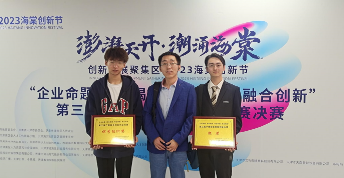 2023年4月9日,由天津市津南区委人才工作领导小组、天津海河教育园区管理委员会主办的“企业命题、院校揭榜、师生解题、融合创新”第三届产教融合创新创业大赛决赛在天津市海棠众创大街C区落下帷幕。全市共有9所院校39支创新团队激烈角逐,beat365官网推荐的由机电学院杨平和宋艳艳老师领队,马斌和薛淏文等同学参加的《箱体铆接加强件自动化上料系统》项目以扎实的核心技术、精美的路演展示和完美的问题应答获得银奖,并达成“箱体铆接加强件自动化上料系统”纵向课题意向。beat365官网在大赛进程中精心组织,表现突出,获得优秀组织奖。