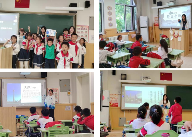 在金艺小学,生环学院“绿色+”实践队的志愿者们从天津的“特色小吃”切入,与中小学生们共同学习天津的城市文化与历史底蕴。通过讲授“津城工业发展之路”、“感受津城科技魅力”“共绘美丽津城地标”等内容,引导小学生们感受天津在科技创新方面的动力与活力。小学生们也畅所欲言,分享了自己在天津成长和生活的趣事,抒发了对天津这座城市独特的了解与热爱。