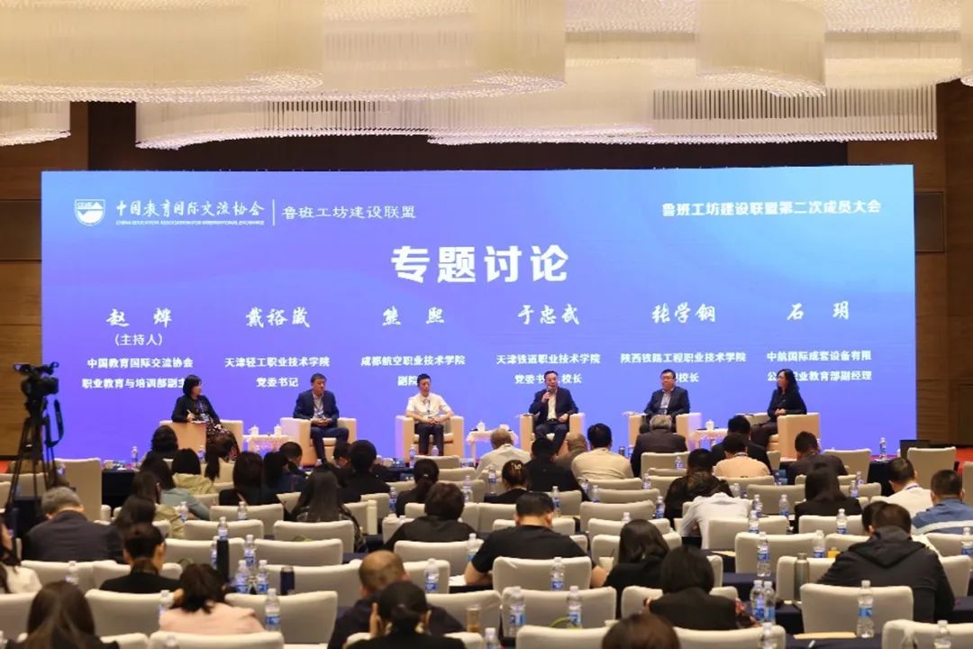 天津轻工职业技术学院党委书记戴裕崴,成都航空职业技术学院副院长熊熙,天津铁道职业技术学院党委书记、校长于忠武,陕西铁路工程职业技术学院副校长张学钢,中航国际成套设备有限公司职业教育部副经理石玥等5位嘉宾围绕鲁班工坊制度建设、合作伙伴选择、可持续发展、风险防范、校企精准对接等问题展开专题研讨,由中国教育国际交流协会职业教育与培训部副主任赵烨主持。