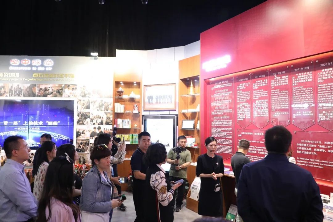 与会代表访问天津轻工职业技术学院并参观天津市鲁班工坊建设体验馆,共鉴共享鲁班工坊建设经验和成果。