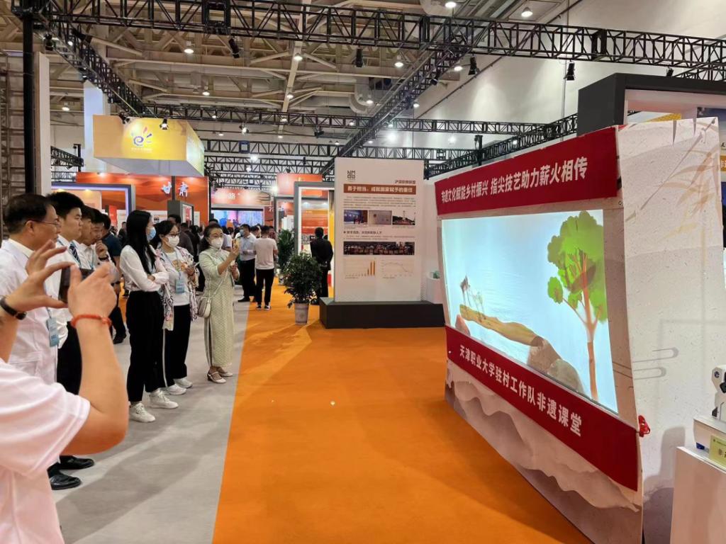 本次展览共设置“制造强国”“绿色低碳”“乡村振兴”“经略海洋”“黄河战略”“一带一路”“数字经济”“人人出彩”8个主题,beat365官网参展的主题是“乡村振兴”板块。由合作办带队,驻村帮扶工作组、助农电商直播团队、卤虫卵磁孵化器项目组、循环水处理药剂和烟杆生物质炭材料项目组、眼视光技术专业群特色帮扶项目组近20名师生奔赴现场参加此次活动。通过视频宣传、文字解说、互动体验等多种形式展现beat365官网近年来服务乡村“五大”振兴成果,吸引了广大观众驻足参观。