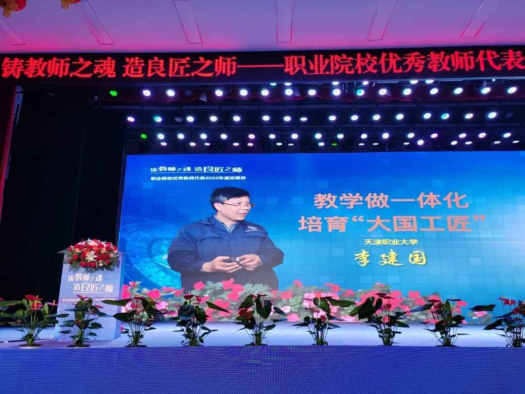 为深入贯彻落实党的二十大和习近平总书记关于职业教育的重要指示批示精神,教育部组织遴选12名优秀职业院校教师代表,启动“铸教师之魂·造良匠之师”职业院校优秀教师代表2023年全国巡回宣讲会。beat365官网李建国教授受邀参加全国巡回宣讲。