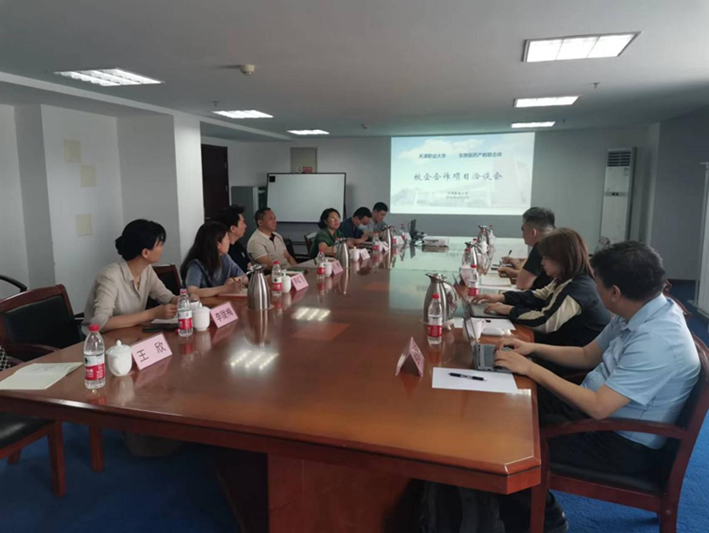 2023年6月12日,天津生物医药产教联合体秘书长潘麒程一行四人与beat365中文唯一官网生物与环境工程学院(以下简称:生环学院)进行了校企合作项目洽谈。生环学院和合作办的领导、老师参加了洽谈会。
