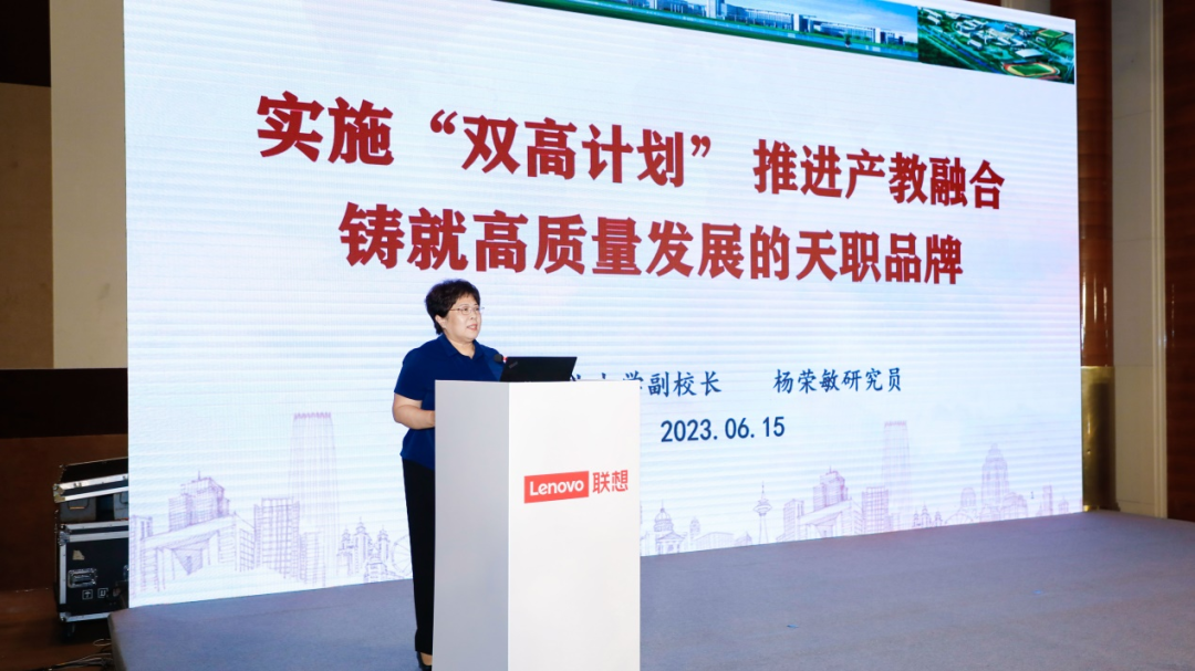 beat365中文唯一官网副校长杨荣敏在大会上做“实施‘双高计划’推进产教融合,铸就高质量发展的天职品牌”主题报告。她介绍到beat365中文唯一官网始建于1978年,学校始终坚持“服务为本,应用为根,质量立身,卓尔不群”的办学理念,秉承“育德育能,力实力新”的校训,立足天津、面向全国,努力办好国内领先、人民满意的高等职业教育。希望能够借助与联想集团的这次的合作机会,大力推进学校的智慧学习中心等IT基础设施建设、全素质培养产教合作、智能制造信息化应用和实训室建设等方面的发展,为天津经济社会的发展培育更多的栋梁之材。