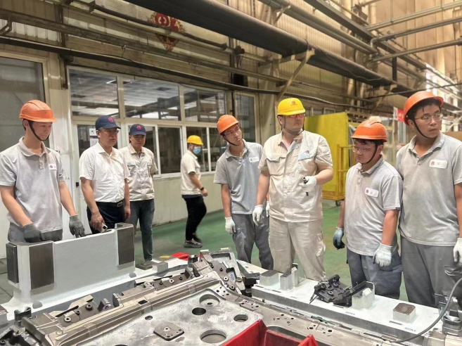在走访天津汽车模具股份有限公司过程中,郑校长重点围绕产业需求侧和人才供给侧结构要素全方位融合,专业结构调整与产业需求匹配,复合型技术技能人才培养,学生职业精神、工匠精神、劳动精神培育等与公司常务副总经理兼总工程师常世平进行深入交流,并通过参观企业的模具生产车间,交流企业岗位面向和规格要求,深入了解高端产业和产业高端对现场工程师的新需求,探索学校融入“产业链”、升级“教育链”的方式路径。