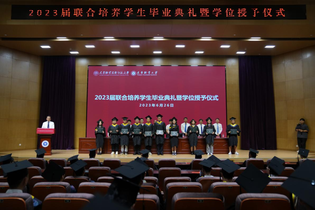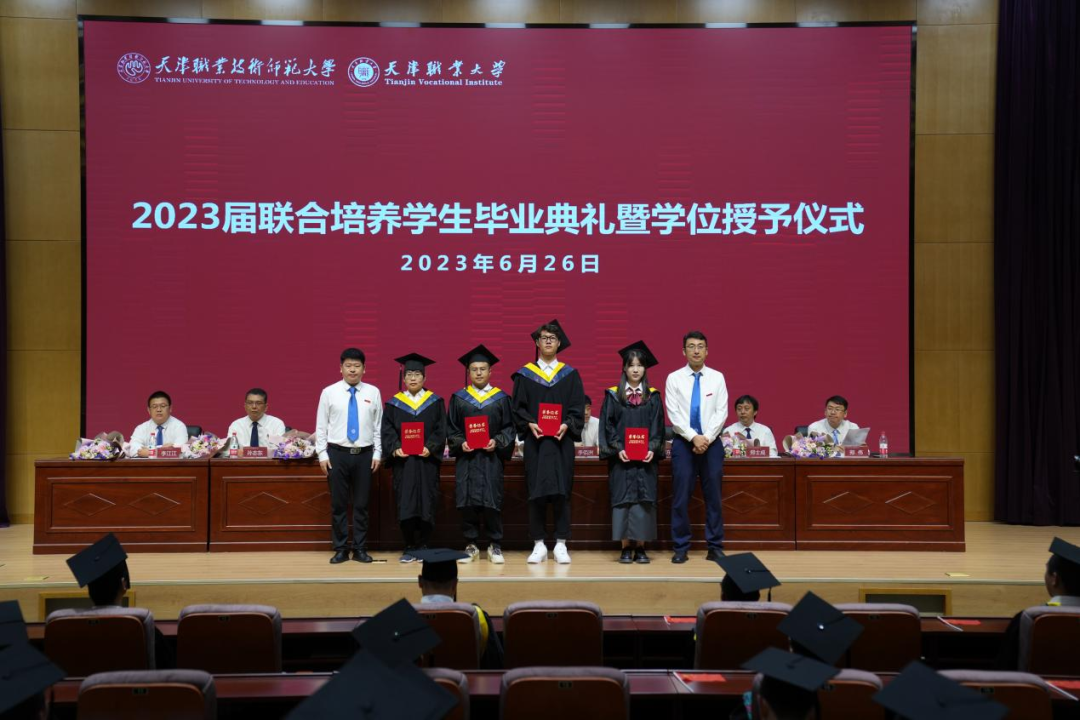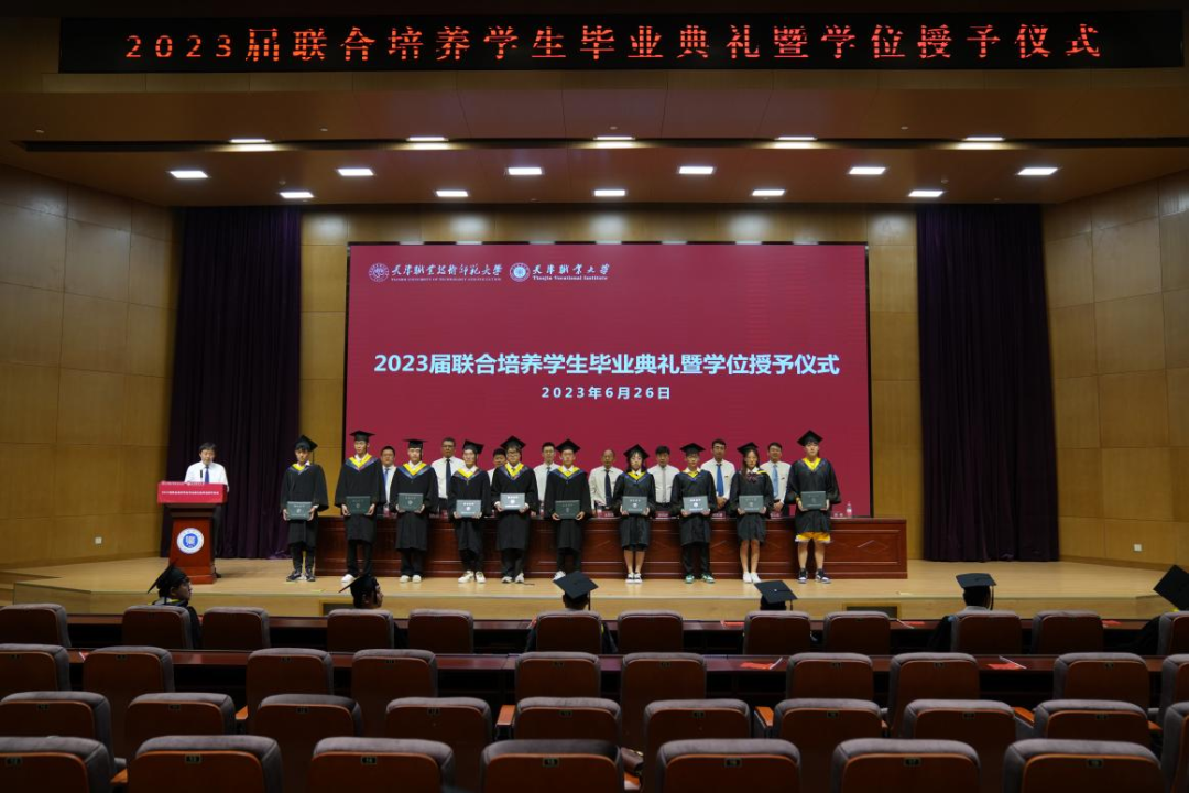 2023年6月26日下午,天津职业技术师范大学·beat365中文唯一官网2023届联合培养学生毕业典礼在beat365官网图书馆报告厅隆重举行。天津职业技术师范大学教务处副处长李佰洲、beat365官网机电工程与自动化学院与汽车工程学院领导班子成员、两个学院教师代表以及全体毕业生共同参加毕业典礼。毕业典礼由汽车工程学院党委书记罗思路主持。