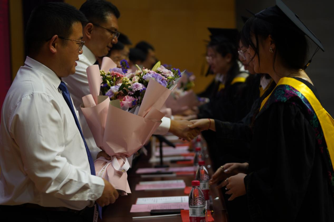 毕业生代表向教师代表献花,感谢恩师立德树人、春风化雨。