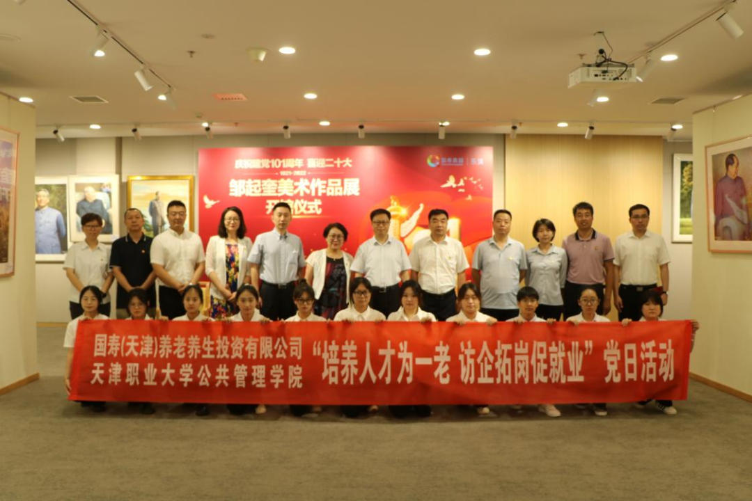 在中国共产党成立102周年华诞来临之际,6月30日,校党委书记夏静波带领公管学院、离退办教师和学生党员一行19人前往国寿(天津)养老养生投资有限公司开展“培养人才为一老 访企拓岗促就业”党日活动。国寿(天津)养老养生投资有限公司党支部书记、负责人张宝山,总经理助理兼养老服务事业部负责人梁伟,人力资源部赵方等部门负责人热情接待夏静波书记一行到访。