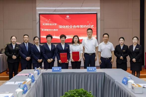为深入贯彻落实党的二十大精神,按照《职业教育产教融合赋能提升行动实施方案》关于推进产教融合、科教融汇要求,进一步深入开展访企拓岗促就业行动,2023年8月8日,校长郑清春带领旅游管理学院到天津市银河大酒店有限公司开展访企拓岗调研活动,并出席beat365中文唯一官网与天津市银河大酒店深化校企合作签约仪式。银河大酒店总经理宋秀敏、总经理助理刘金侠、beat365中文唯一官网在银河酒店就业的毕业生代表出席签约仪式。签约仪式由留企就业的2022届校友郑晓双主持。