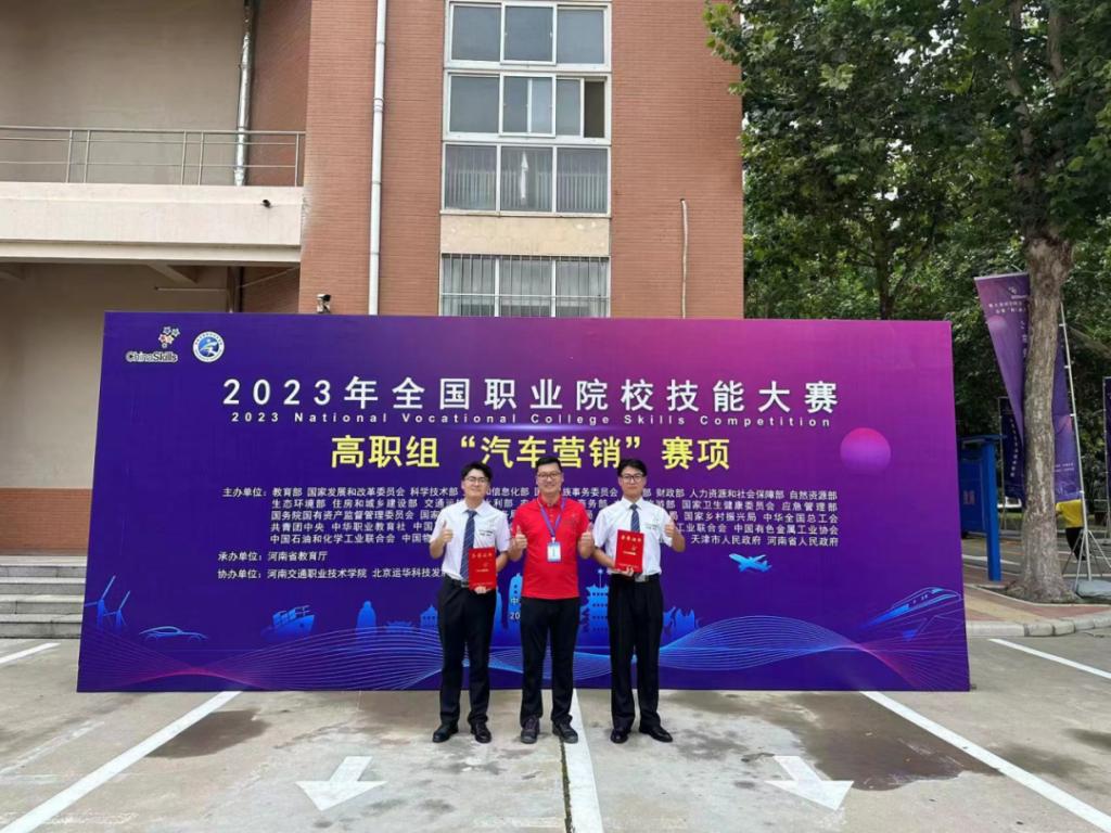 汽车营销赛项设置“汽车新媒体营销策划与销售作业、汽车保险查勘与理赔作业、机动车鉴定与评估作业”三个模块,参赛选手要求在规定时间内,利用相关软件完成汽车展厅销售策划、汽车情景营销、机动车鉴定评估、汽车保险接案及事故查勘等操作,涵盖了汽车市场营销策划、汽车销售实务、二手车鉴定评估、汽车保险与理赔等多项理论知识和实践技能,全面考察选手的专业核心能力和职业综合能力,是一次极具挑战性的比赛。备赛期间,学院领导高度重视,制订了详细的集训方案,指导教师王锦昆、柏秀元与学生吃住在校、放弃休息,克服假期训练中的诸多困难。通过开展封闭式集训,认真剖析和演练,最终斩获佳绩。