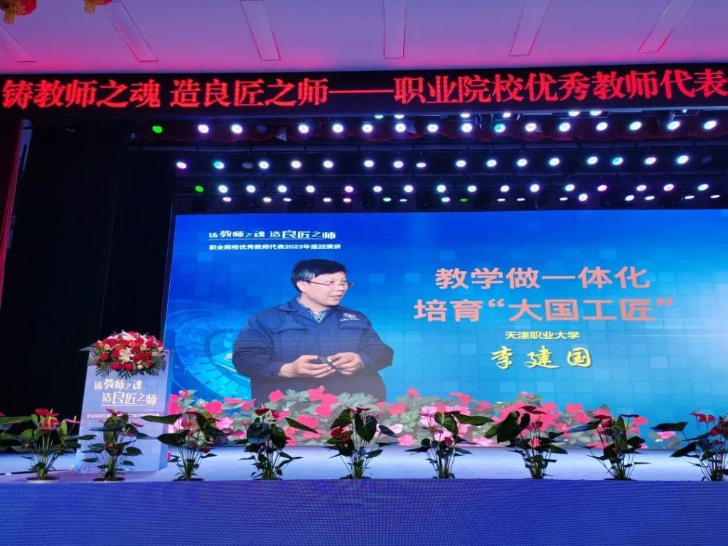为深入贯彻落实党的二十大和习近平总书记关于职业教育的重要指示批示精神,教育部组织遴选12名优秀职业院校教师代表,启动“铸教师之魂·造良匠之师”职业院校优秀教师代表2023年全国巡回宣讲会。beat365中文唯一官网物联网应用技术专业教学创新团队李建国教授受邀参加全国巡回宣讲。
