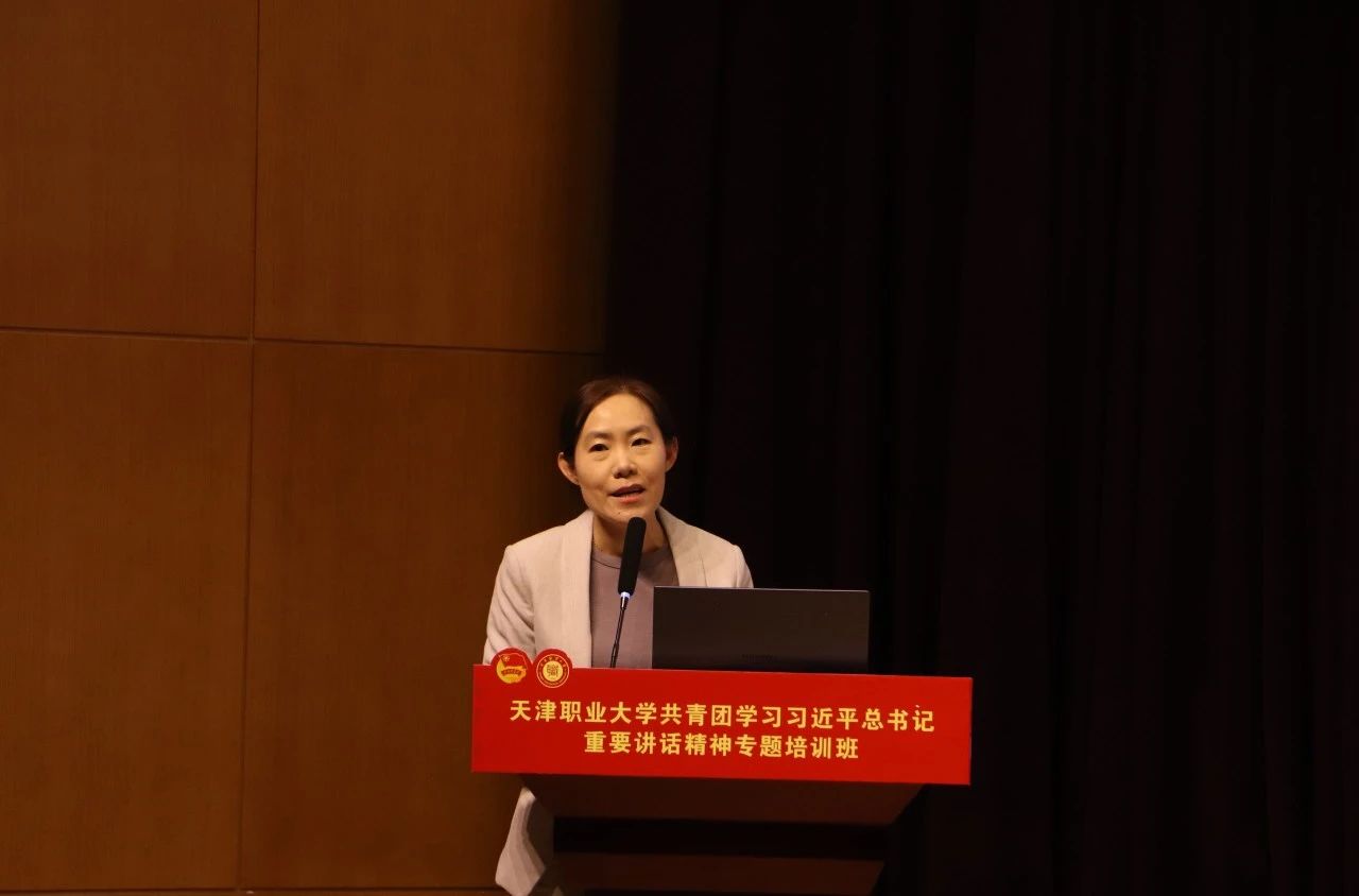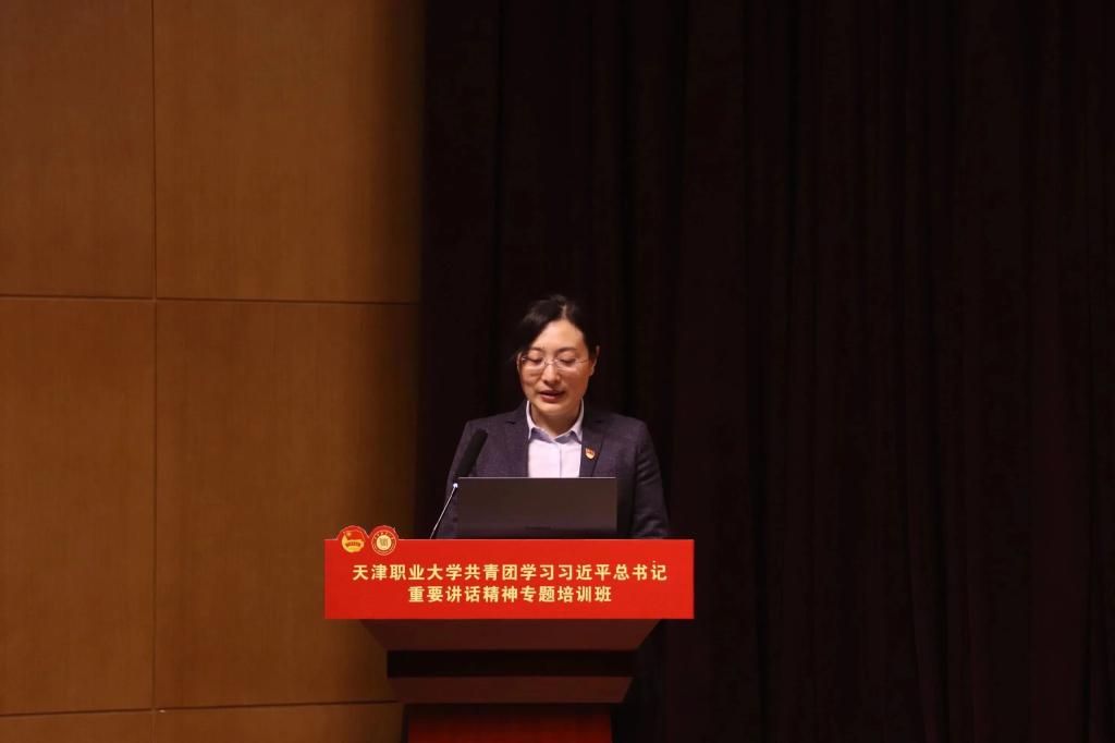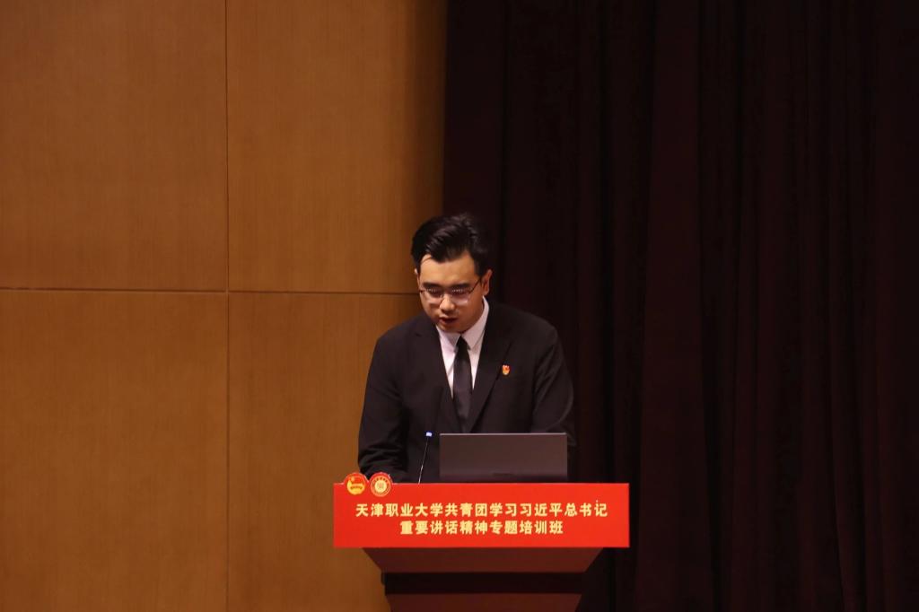 团十九大代表、校青年理论宣讲团学生团长、校第六期“青马工程”工匠精神实践营学员、公共管理学院团委(学生)副书记、2020级社会工作(老年福祉与管理)专业1班班长兼团支部副书记王思雨作为学生代表发言,他分享了自己对习近平总书记在同团中央新一届领导班子成员集体谈话时的重要讲话精神、党中央致词精神的感悟,表达了要在专题培训过程中不断加强理论学习、立足丰富实践活动、奋进建功立业的信心,体现了天职学子青春逢盛世、逐梦正当时的精神风貌。天津市青年讲师团成员、天津市优秀团干部、艺术工程学院团委书记史超老师在交流发言中结合丰富的团学工作经验向大家阐述了作为教师团干部应该如何在自身加强学习、提升理论水平的同时,充分发挥学生团员和青年的特点,强化青年思想引领、服务青年成长发展,引导青年提振信心、奋发有为。马克思主义学院贠雅娟老师作为beat365中文唯一官网青年理论宣讲团指导教师,从加强理论宣讲、学深悟透习近平总书记重要讲话精神的角度向大家发出了号召,也将参与培训班和宣讲工作的全程指导,充分发挥师生团干部的骨干作用,切实增强各级师生团干部党的科学理论青年化阐释能力,能够深入基层支部、学生组织进行面对面理论宣讲,带动广大青年学生深化认识、深入领会。