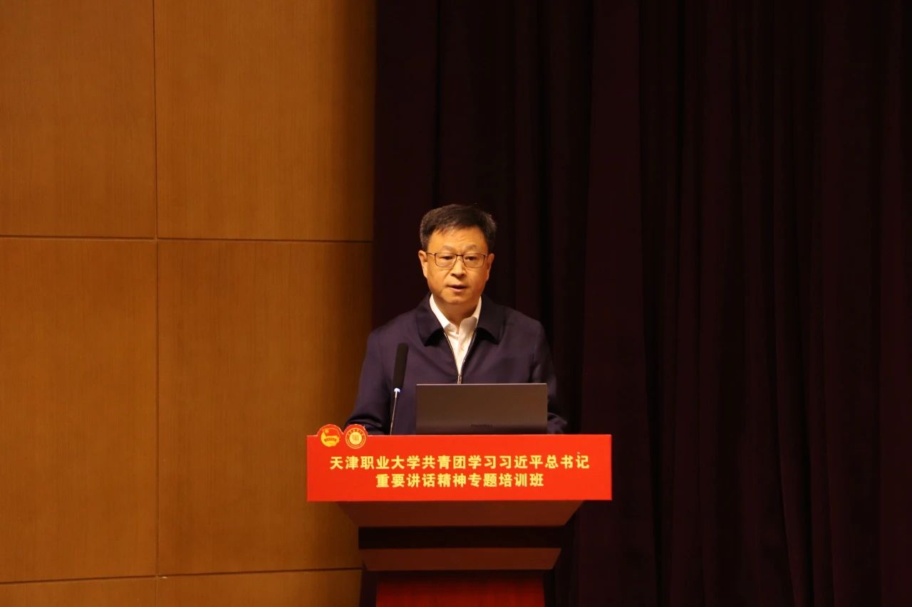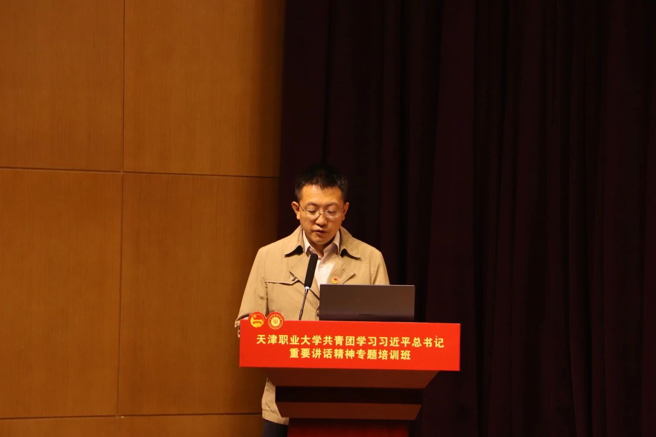 校党委书记夏静波老师在开班仪式上讲话,他代表学校党委对培训班的顺利开班表示热烈的祝贺,强调了开展这次专题培训班的重要性和紧迫性,并对全体师生学员提出了要求:一是要坚持读原著、学原文、悟原理,深读《习近平著作选读》、《习近平新时代中国特色社会主义思想专题摘编》《论党的青年工作》等著作。教师团干部应持续发挥好引领青年、组织青年、服务青年的优势,在广大团员青年中营造浓厚的学习氛围;二是知行合一,坚持到社区、到企业开展实践锻炼,通过通过跟岗见习、志愿服务等,加强社会观察,在基层一线磨练意志、锤炼品格、增长才干,不断打造具有天职特色的系列活动品牌;三是鼓励大家学以致用,勇于创新担当,用“青言青语”阐释党的创新理论,在学习和实践中读懂我们国家和民族的过去、现在与未来,再将这份真知真悟转化为奉献祖国的真情真行,将个人的青春梦想融入国家的前途、民族的命运和人民的幸福中,最终收获理想的硕果。