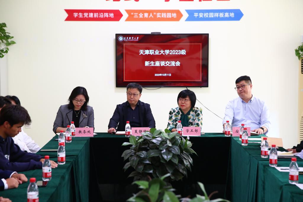 座谈会上,学生代表积极踊跃发言,大家从初识天津到校园故事,从城市文化到学校美景,从专业认识到职业发展,从未来理想到生活小事谈感受、聊体会,真情实感、畅享未来。在同学们真情流露地发言中,与会老师围绕日常生活与服务、专业学习与规划等方面给予了指导与鼓励,让学生真正享受“零距离”服务。