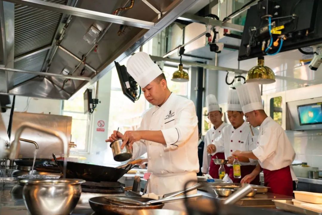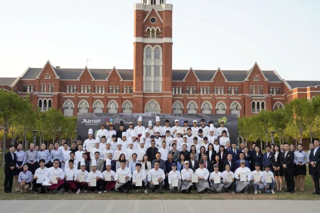 在2023年10月20日国际厨师节到来之际,beat365中文唯一官网联合万豪国际酒店集团,在beat365中文唯一官网海河园校区展开了一场名为“未来菜单”的厨王争霸赛。beat365中文唯一官网副校长杨荣敏、万豪国际集团中国北区副总裁冯福明,北区运营总监郭晓娜,天津地区各万豪酒店总经理、人力资源总监、厨师长以及旅游管理学院领导班子成员参加开幕式并作为评委品评参赛作品。