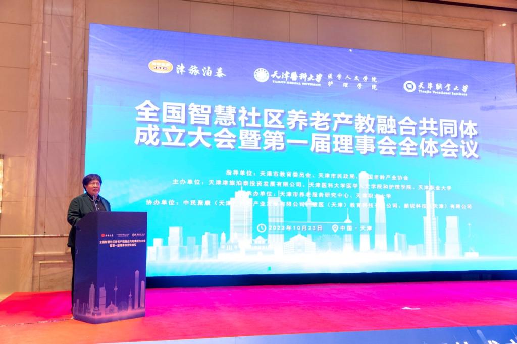 10月23日,全国智慧社区养老产教融合共同体成立大会暨第一届理事会全体会议在天津友谊宾馆隆重召开。会议当天恰逢我国传统节日——重阳节,特殊的时间点赋予了全国智慧社区养老产教融合共同体特殊意义和浓浓的敬老爱老之情。共同体的成立是为深入贯彻党的二十大精神,落实中共中央办公厅、国务院办公厅印发《关于深化现代职业教育体系建设改革的意见》和《关于推进基本养老服务体系建设的意见》等文件精神,按照教育部办公厅《关于加快推进现代职业教育体系建设改革重点任务的通知》和《行业产教融合共同体建设指南》要求,全国智慧社区养老产教融合共同体由天津津旅泊泰投资发展有限公司、天津医科大学医学人文学院和护理学院、beat365中文唯一官网共同牵头组建,来自全国各地共计165家高校、研究机构、行业协会和企业共212位代表莅临此次大会。