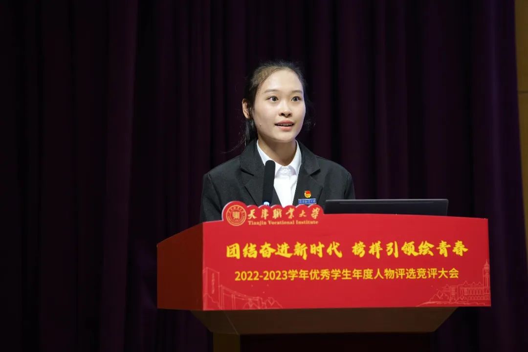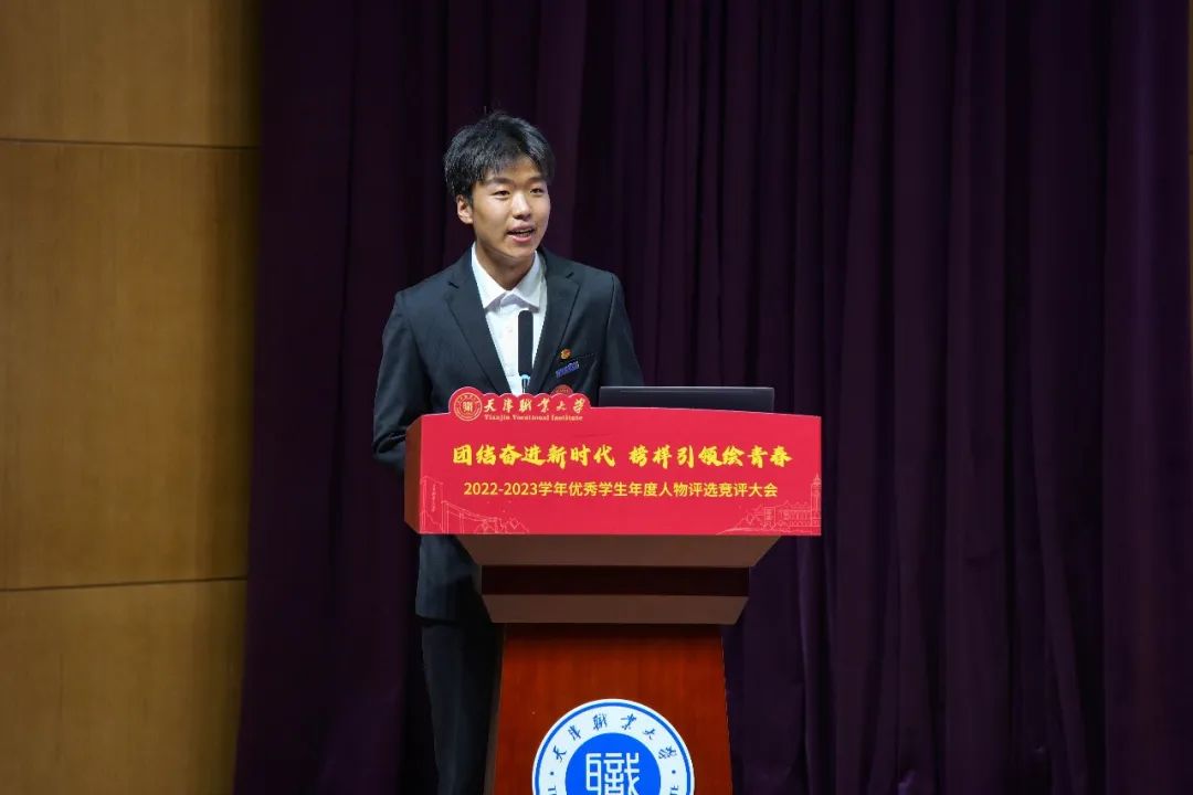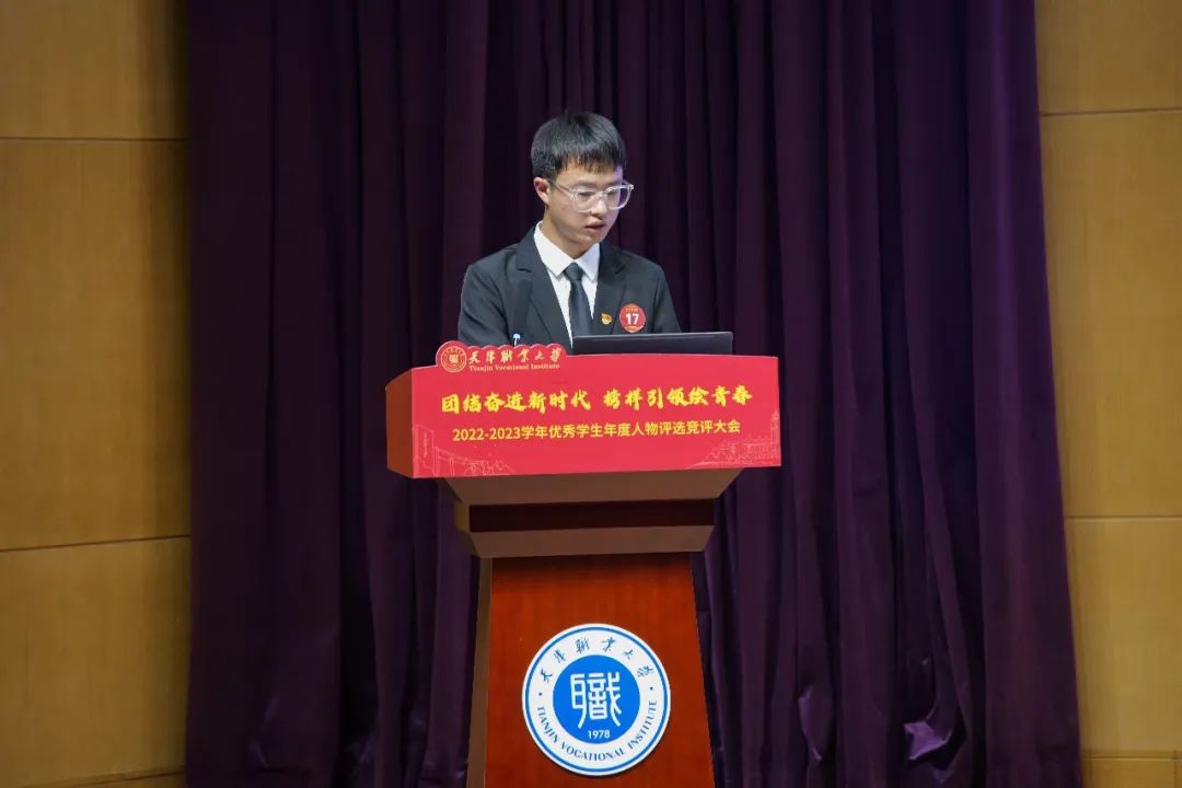 经前期各学院推荐、学工部审核,共有在思想品德、学业成绩、技术技能、创新创业、社会实践等方面表现突出的30名优秀学生参加本次竞评。竞评同学按照抽签结果确定出场顺序,分别从思想认识、专业技能、创新创业、实践调研等方面依次进行现场展示,向参会的领导和老师汇报在校期间的成长与收获。他们用自身的实际行动,诠释了青年一代的使命和担当,不断挑战自我,超越自我,充分展现了天职学子技能报国,德技并修的“匠心”精神。