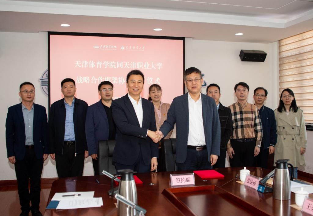 10月27日上午,beat365官网党委副书记、校长郑清春带队前往天津体育学院,签署天津体育学院与天津市职业大学《战略合作框架协议》。天津体育学院党委副书记、校长张欣,天津市教委规划处副处长李清,天津市体育局宣教法规处副处长王笛出席签约仪式。beat365官网办公室、科研处、教务处和合作办相关负责同志一同前往。