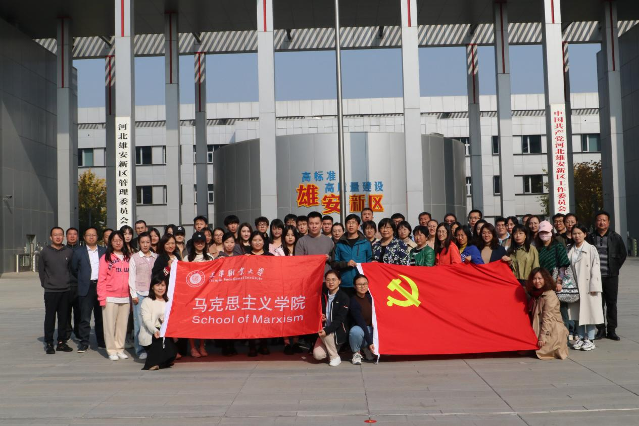 为进一步学习贯彻落实习近平总书记在学校思想政治理论课教师座谈会上的重要讲话精神,切实加强思政课教师队伍建设,全面推进“大思政课”及大中小学思政课一体化建设,在调查研究中提高工作本领,10月28日,马克思主义学院组织beat365官网全体思政课教师、学生代表及北辰区大中小学思政课一体化建设联盟学校教师代表60余人赴雄安新区开展实践调研学习。