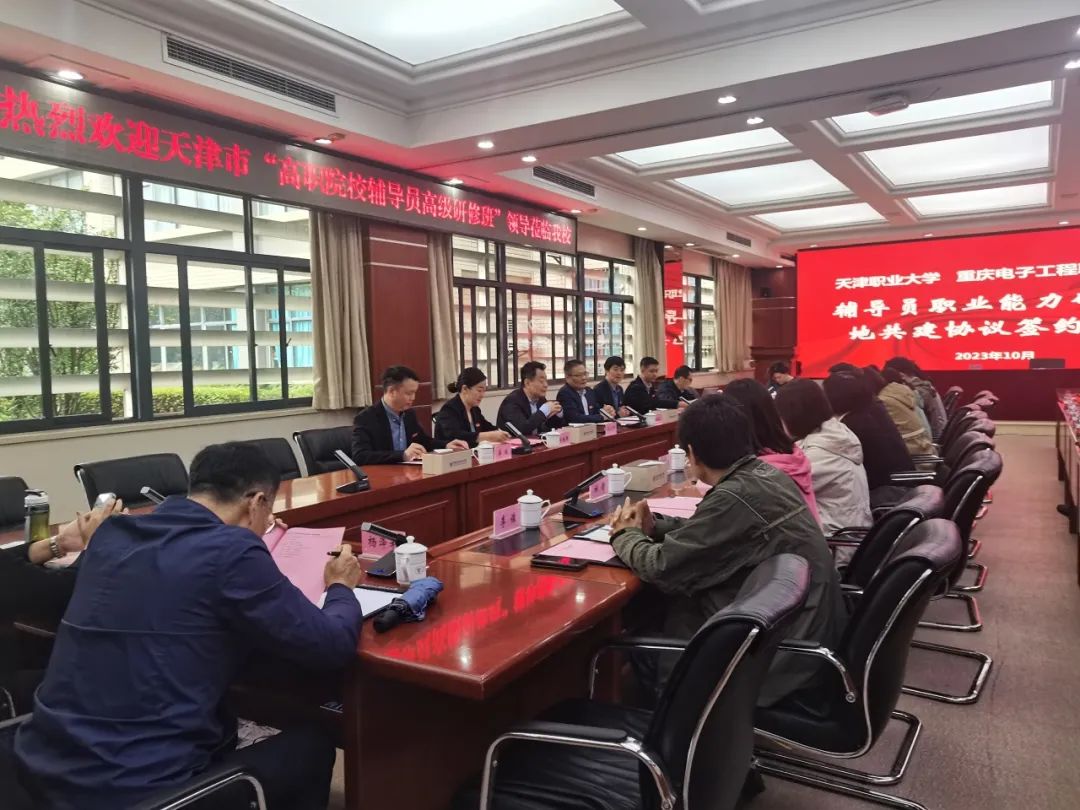 10月24日-10月27日,研修班由校党委书记夏静波带队,前往西南大学、重庆工业职业技术学院、重庆电子工程职业学院进行学访调研工作,学习了三所高校的思想政治教育品牌建设、学生管理的信息化建设、“一站式”学生社区综合管理模式建设工作等相关工作经验。beat365官网与重庆工业职业技术学院、重庆电子工程职业学院就共建辅导员职业能力研学基地达成协议,并举行现场签约及授牌仪式,助推两个学校共同探索合作机制,延伸人才培养链的宽度、广度和深度,实现双向提升。