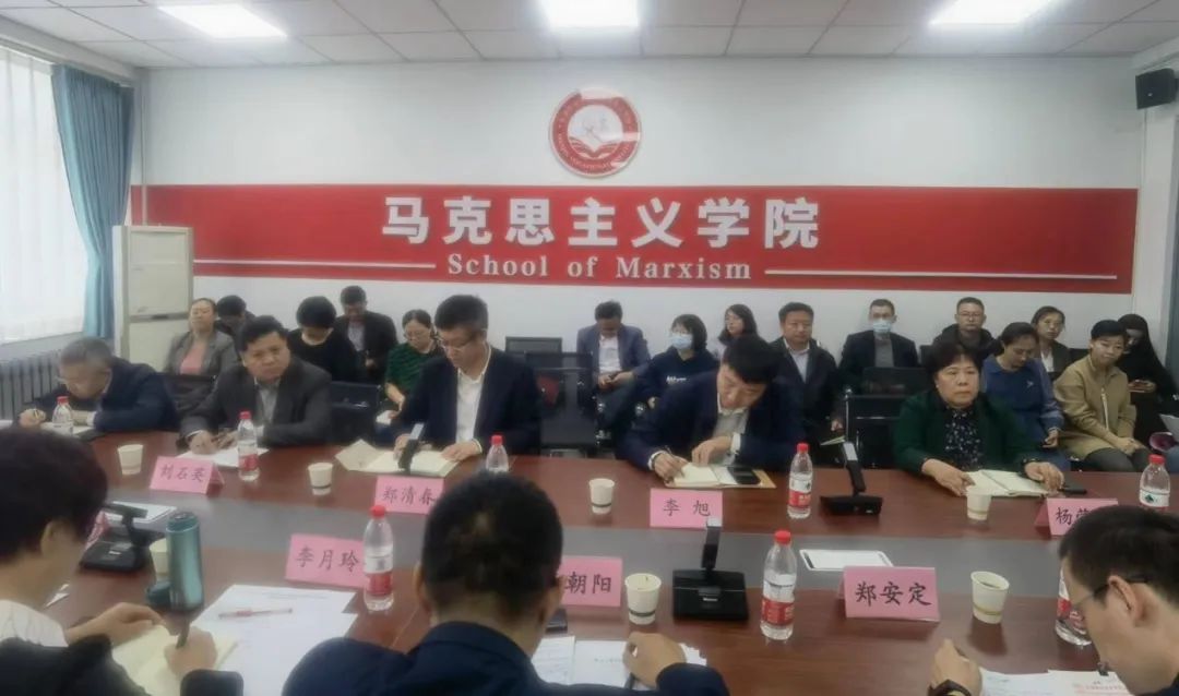 为进一步学习贯彻习近平总书记在学校思想政治理论课教师座谈会上的重要讲话精神,全面提升思政课教师教育教学能力,11月1日,马克思主义学院以“学3·18重要讲话 展魅力思政课堂”为主题,举办了2023年天津市首届青年思政课教师演讲比赛、“青教赛”(思政课组)校级选拔赛暨马院集体备课会。校党委副书记、校长郑清春,党委副书记李旭,副校长刘石英、杨荣敏,纪委书记唐勇出席备课会并指导工作。选拔赛和备课会特邀天津师范大学马克思主义学院院长李朝阳教授、天津农学院思政研究中心主任李月玲教授、天津职业技术师范大学马克思主义学院副院长郑安定副教授及beat365官网教务处副处长李海斌教授、马院教研室主任李福鹏副教授等校内外专家评委点评指导,学院领导班子成员及全体思政课教师参加。