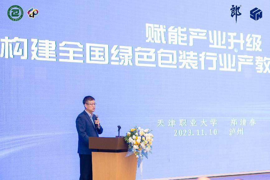 论坛期间,校长郑清春作“赋能产业升级,构建全国绿色包装行业产教融合共同体”报告,郑校长分别从包装共同体建设背景、建设思路、组织架构等方面系统介绍了包装共同体赋能产业升级的建设目的、意义和具体举措,同时以立足古蔺县“酒业强县”战略,与四川省古蔺县职业高级中学校合作为例,展示了包装共同体具体实施路径。