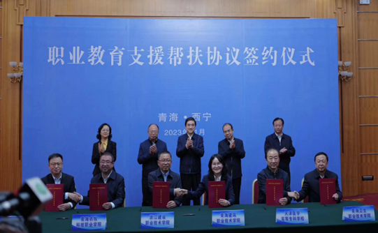 此次与青海农牧科技职业学院建立支援帮扶合作关系,是beat365官网继帮扶和田职院、武威职院和威县职教中心后又一帮扶院校,是深入贯彻落实《天津市人民政府 青海省人民政府贯彻党的二十大精神进一步深化支援合作框架协议》的具体举措。下一步,beat365官网将落实协议内容,从专业建设、课程资源建设与开发、实训室建设、师资队伍教学和科研能力提升、产教融合、国际合作与交流等方面,通过职业教育改革成果分享、专业带头人跟岗学习、学生交流、职业技能大赛指导、参与产教融合共同体建设等方式,助力青海农牧科技职业学院教育教学水平和育人成效双提升,为青海省经济社会发展和乡村振兴做出新的贡献。