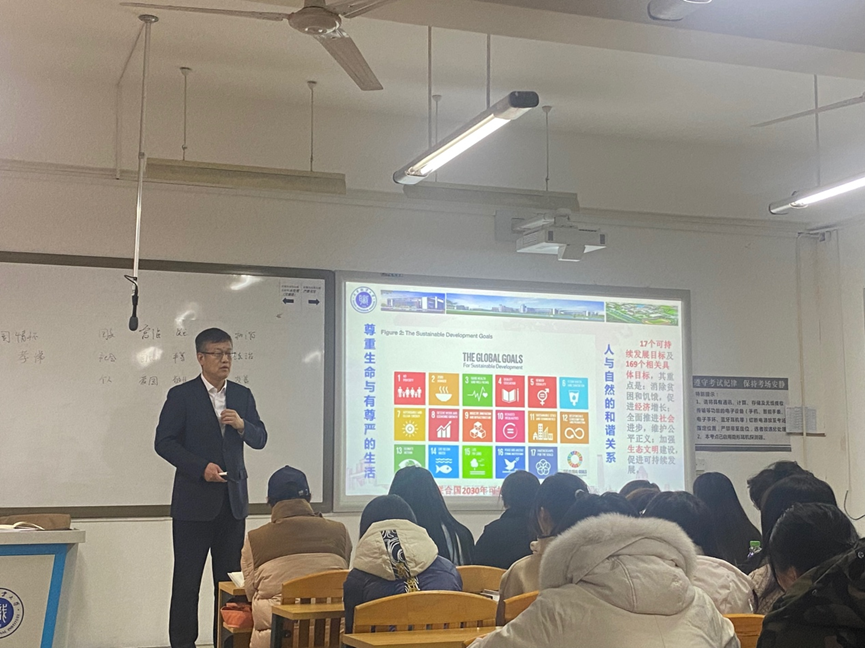 首先,郑清春校长运用“雨课堂”平台弹幕功能引导学生发布自己的座右铭,通过与学生密切互动的新颖方式开启精彩讲授。接着,郑校长从古今结合与中西对比的视角,透彻分析了社会主义核心价值观对社会主义本质要求的体现、对中华优秀传统文化的继承以及对世界文明有益成果的吸收,并强调社会主义核心价值观对巩固中国特色社会主义制度、推进国家繁荣发展、维系社会和谐稳定和建设社会主义文化强国的重要作用。然后,郑校长以《联合国2030年可持续发展议程》为切入点,结合职业教育类型特点和学生专业特点,通过大量生动的鲜活案例,深入浅出地向学生们讲授了深入实施科教兴国战略、人才强国战略、创新驱动发展战略,积极推进教育、科技、人才“三位一体”协同融合发展的重要性与着力点。