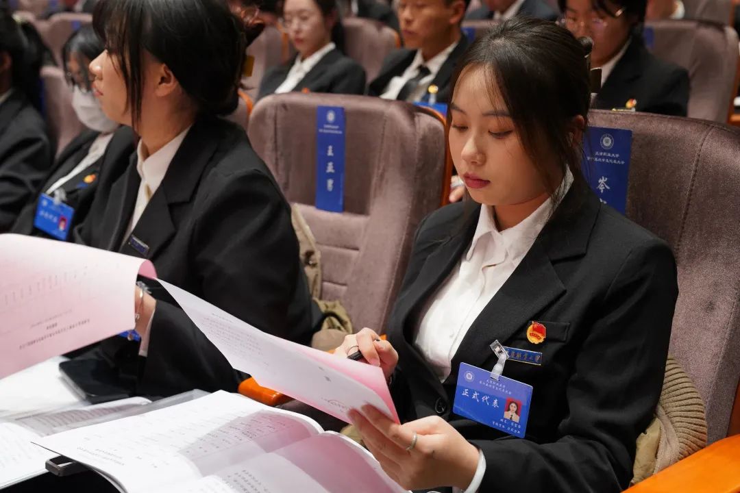 校学生会第十四届主席团成员李芊芊同学作了题为《青春建功 挺膺担当 奋楫争先 赓续前行 团结引领广大天职学子为推动学校职业教育高质量发展贡献青春力量》的工作报告。在深入学习宣传贯彻党的二十大精神,认真学习习近平总书记关于青年工作的重要思想的背景下,分别从思想政治引领、组织改革要求、保障学生权益、品牌活动、志愿服务五个方面,全面地回顾了过去一年学生会的工作;同时从beat365官网学生会组织改革进程出发,对beat365官网学生会今后发展做出规划,对与会学生代表提出要求和希望。