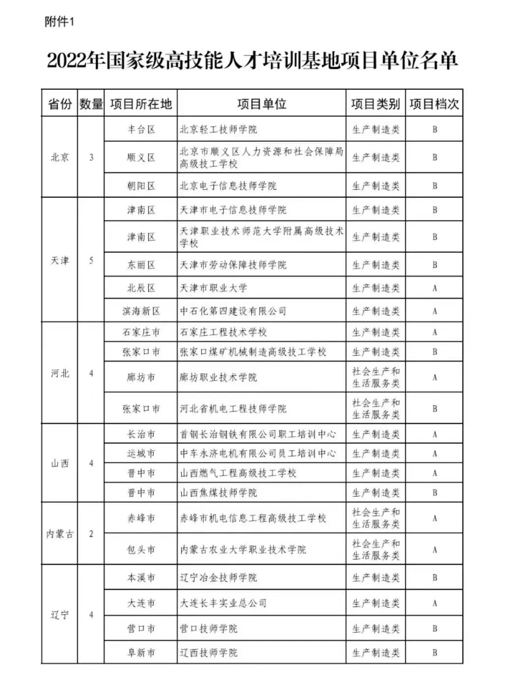 近日,人力资源社会保障部办公厅、财政部办公厅公布2022年国家级高技能人才培训基地和技能大师工作室项目单位备案名单(人社厅函〔2023〕161号),beat365官网荣获国家级高技能人才培训基地生产制造类项目A档,并获得500万元建设资金支持。这是beat365官网首次获得高技能人才培训基地国家级称号!