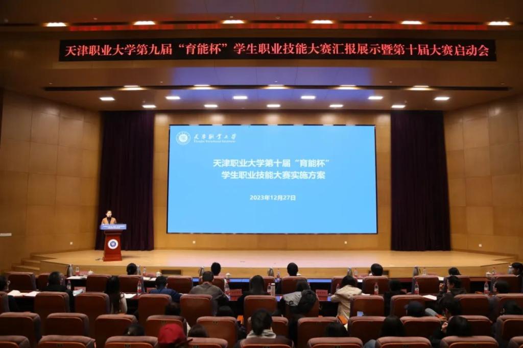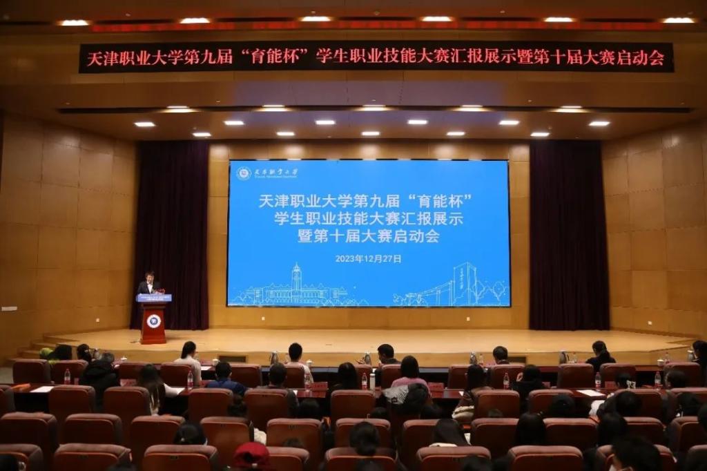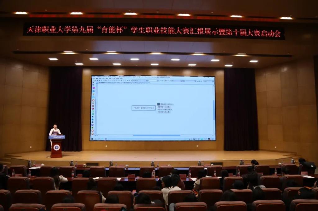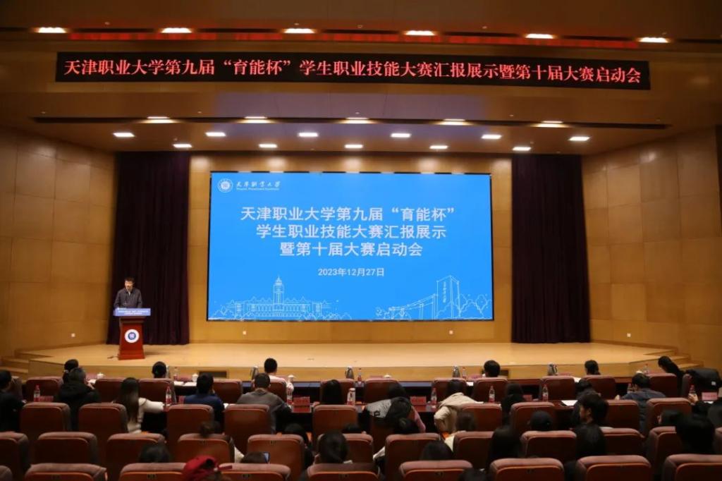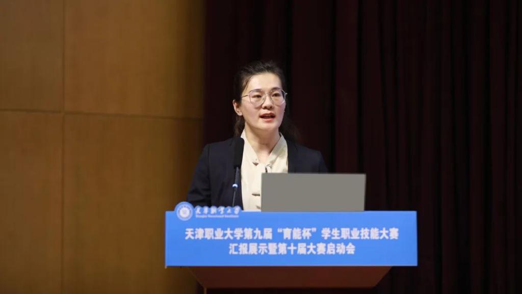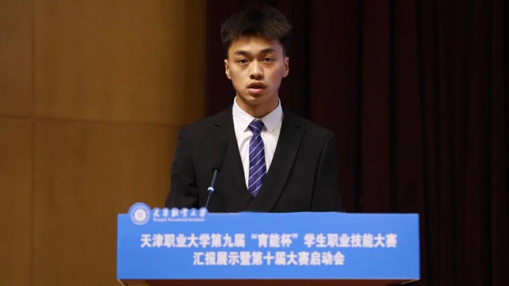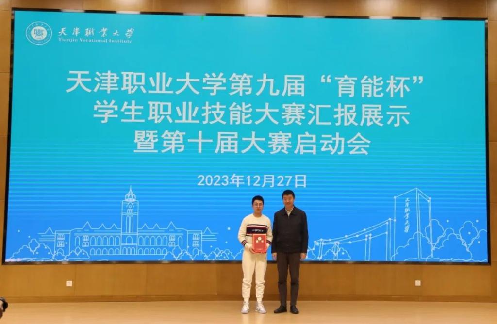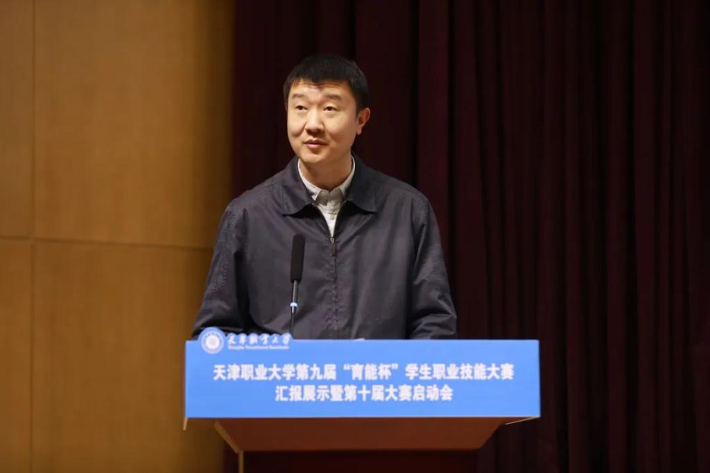 校党委副书记李旭老师在讲话中传达了市委副书记陈辐宽出席第十七届“挑战杯”天津市大学生课外学术科技作品竞赛总结交流会上的讲话要求,对学校办好相关赛事既提供了指导,又明确了更高的标准。他充分肯定了学校“育能杯”各项赛事的成功举办,以及老师和同学们辛勤的付出,向取得优异成绩的同学们表示祝贺。同时也强调了“育能杯”学生职业技能大赛对人才培养、学风建设、校园文化的重要作用,并提出三点希望,一是要高度重视,以高站位、高要求强化认识,全力以赴做好技能大赛各项筹备工作,努力把大赛办成符合新时代技能人才培养模式、让学校师生自豪、让企业社会关注、让广大技能人才振奋的高水平赛事;二是精心组织,以高标准、高效率规范办赛。立足职业教育类型特色定位,丰富职业技能大赛内涵,助力beat365官网技术技能人才培养与产业发展同心同向、同频共振。同时做好广泛宣传,在全校范围内营造传承和弘扬劳模精神、劳动精神和工匠精神的浓厚氛围;三是优化服务,以高素质、高技能选拔人才。努力构建院赛到市级及以上赛项的选拔通路,让更多的学生通过比赛深入了解专业、更加喜爱专业、发奋学好专业,让专业素质高、技术技能强的学生通过比赛脱颖而出,让“育能杯”成为天职青年锻炼自我、展示自我、成就自我的舞台,以技能大赛为契机,推动全校广大师生传承匠心、精进技能,在互学互鉴、奋勇争先中创造新的业绩,为全面建设社会主义现代化国家和加快天津高质量发展贡献天职力量。