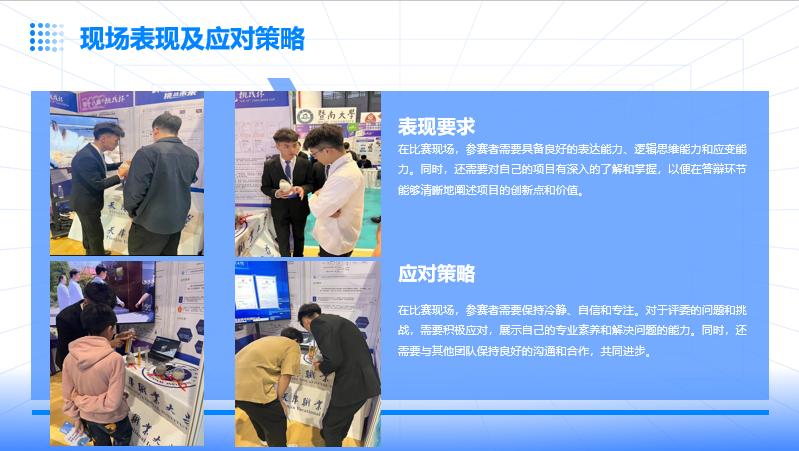 汇报展示环节,汽车学院作为办赛特色鲜明的学院代表,对“育能杯”院赛组织做了案例分享;第八届全国印刷行业职业技能大赛装订工赛项一等奖获奖学生包印学院王传玉同学、中华人民共和国第二届职业技能大赛的餐厅服务(国赛精选)赛项金牌获得者旅游学院任诗童老师、第十八届“挑战杯”全国大学生课外学术科技作品竞赛二等奖、“互联网+”市赛金奖获奖团队代表生环学院孟浩天同学、第十八届“振兴杯”全国青年职业技能大赛学生组银奖获奖团队代表经管学院董书言同学依次做了分享交流,从各自的领域向大家阐述了在面对技能大赛或是双创大赛的时候不辞辛苦的坚持和不懈奋进的信念,展现了他们攻坚克难、步步为营、厚积薄发、终得硕果的努力过程和良好的精神面貌,起到了很好的榜样示范作用。