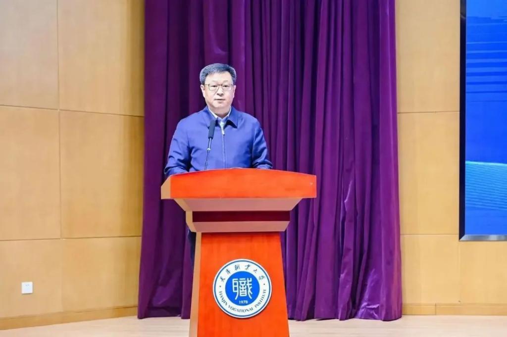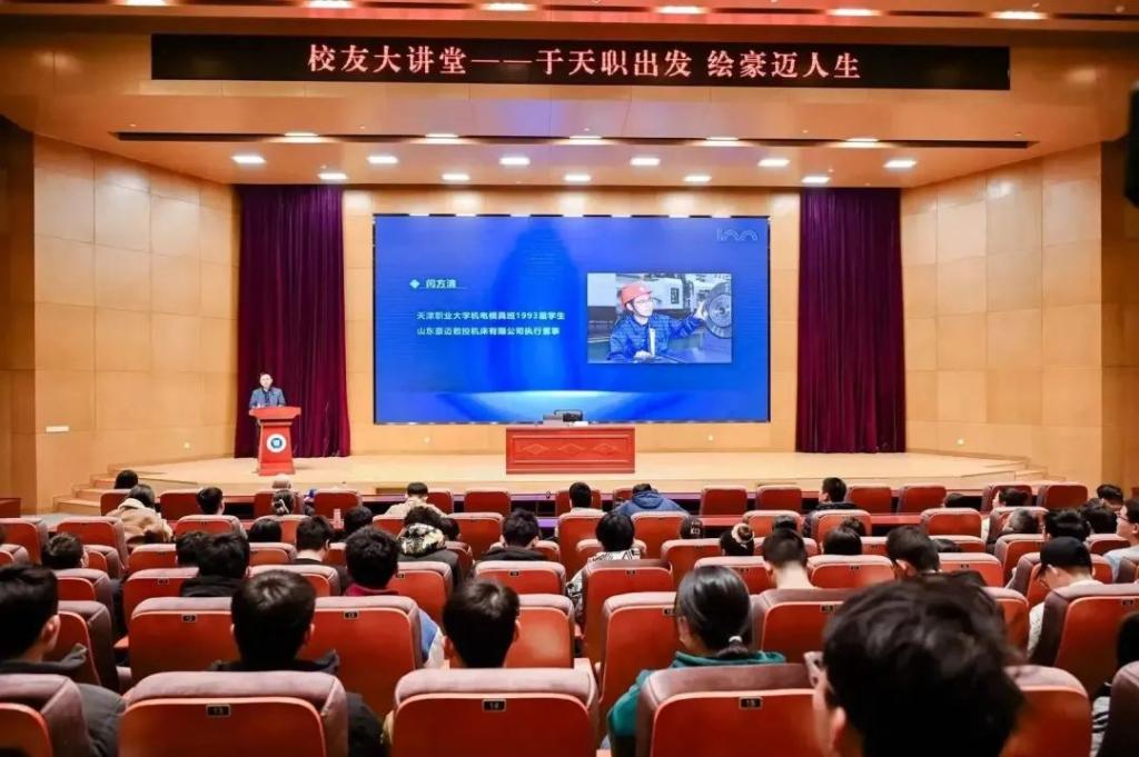 闫方清以《于天职出发,绘豪迈人生》为题,讲述了他1993年进入beat365官网机电模具专业“潍柴班”的学习经历,正是母校“育德育能,力实力新”的校训精神和老师们专业严谨的治学态度,激励着他不断勤奋求实、勇于创新、乐业敬业、追求卓越。当下正处于职业教育大发展的黄金时期,党和国家比以往任何时候都更加重视职业教育的发展。他鼓励学弟学妹们珍惜当下优越的校企合作环境和先进的学习实训设备,在天职优秀教师团队的教育指导下,弘扬天职精神,踔厉奋发、笃行不怠,争做新时代能工巧匠、大国工匠!