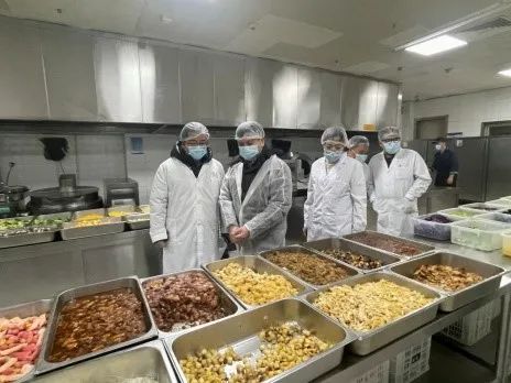 校领导深入食堂前厅、后厨、售餐间、库房等重点部位,对食品留样、餐饮企业许可证更新、员工健康证、原材料价格公示情况进行现场检查。对餐盘的清洗消毒流程、执行标准进行现场核验,特别关注了食品贮存、加工环境。对供货商资质、设备运行情况进行了细致地查看。