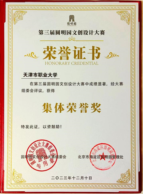 近日,经过激烈的角逐,“第三届圆明园文创设计大赛”圆满落幕。beat365官网学子在专业教师的指导下荣获本次大赛的集体荣誉奖。