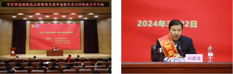 报告会上,全国志愿服务先进个人、山西省政府机关优秀党员、山西省首届十大最美公益人,山西省学雷锋道德模范志愿服务先进事迹巡讲团领队刘建成同志传达贯彻习近平总书记关于学雷锋活动的重要指示精神和党中央的文件精神以及教育部的文件精神并讲话。接着,他以《勇担当弘扬雷锋精神 践初心推进志愿服务》为题作报告,报告围绕省巡讲团的创建历程、感人事迹、先进典型等方面阐述巡讲团用行动践行初心使命、以奉献诠释责任担当,让践行雷锋精神成为一种常态和习惯,让雷锋精神在心中生根发芽。刘建成同志用一句句激情洋溢的话语,鼓励大家把握雷锋精神的内涵实质,认真领悟雷锋同志的先进事迹。