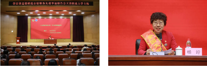 受到习近平总书记接见的全国文明家庭代表,山西省省直机关道德模范,山西省商务厅正处级干部杨竚同志以《大爱情怀铸文明 学习雷锋树新风》为题作报告。他讲述了“从小爱到大爱”的家风传承故事,她与爱人顶着巨大压力,为先天残疾的儿子奔走治疗,给予其精神上的关怀。她用爱心和真情践行了新时代雷锋精神,影响和带动了更多人和家庭投入到志愿服务事业中来。倡议同学们投身到志愿者行列,在践行志愿服务精神中增长才干,彰显文明底色。