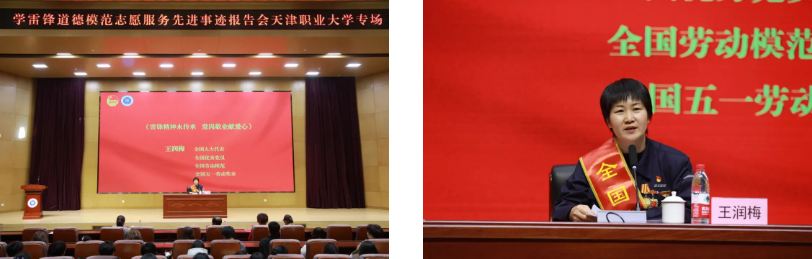 全国人大代表,全国优秀党员,全国劳动模范,全国五一劳动奖章,太原市政建管中心二所党总支书记,副所长、水道三组组长王润梅同志以《雷锋精神永传承 爱岗敬业献爱心》为题作报告。她坚守在下水道清掏工作第一线、在雨中逆行,在平凡的岗位上作出了不平凡的业绩,为市民守护一方洁净。在本职工作和履职活动当中,一手洋镐叉子一手书本电脑,做到“动起来劳动”与“静下来学习”两不误,在工作中不断总结和思考,凭借着多年的工作经验和日常的细致观察,创新工作思路,为打造市政精品工程发声。会上,王润梅同志鼓舞同学们努力学习成才,用脚步丈量青春,以实践奉献社会。