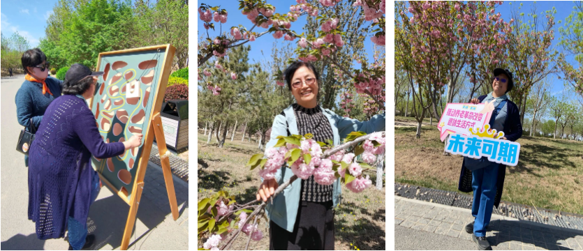 公园里,老同志们进行健步走打卡游戏活动,感受春日气息,欢声笑语不绝于耳。
