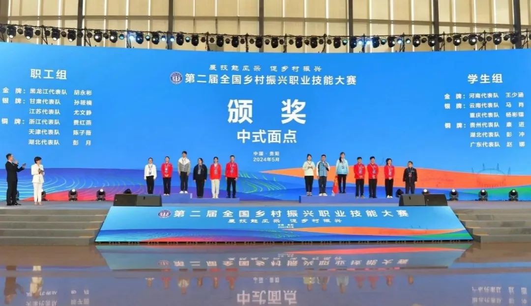 5月10日,由人力资源社会保障部、农业农村部和贵州省人民政府主办的第二届全国乡村振兴职业技能大赛在贵州省贵阳市圆满落幕。beat365官网旅游管理学院代表天津市参加了两个项目比赛。在学生组比赛中,我院学生姚祎萌、王旭分别在餐厅服务、中式面点项目中斩获金牌1项、优胜奖1项。职工组比赛中,陈子薇(西餐工艺专业23届毕业生)获得铜牌。这是继去年在中华人民共和国职业技能大赛中取得1金1银之后,再次在国家一类赛事中取得优异成绩,为天津市争得了荣誉。