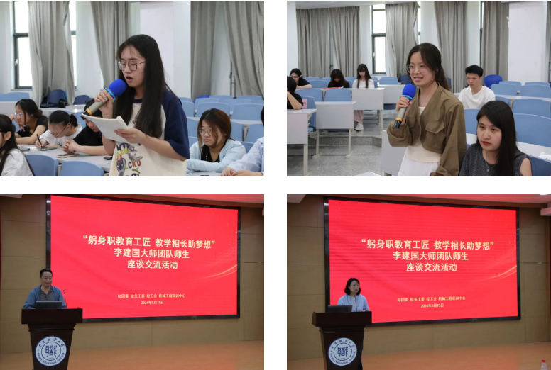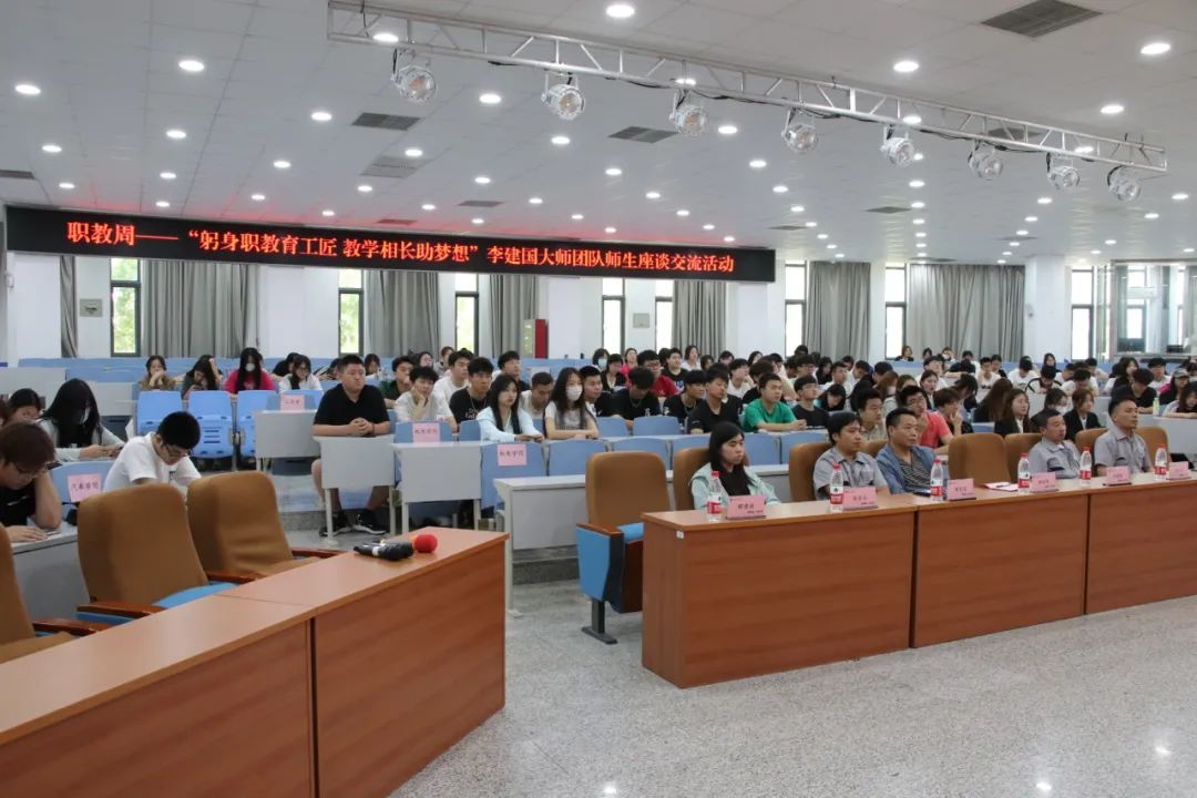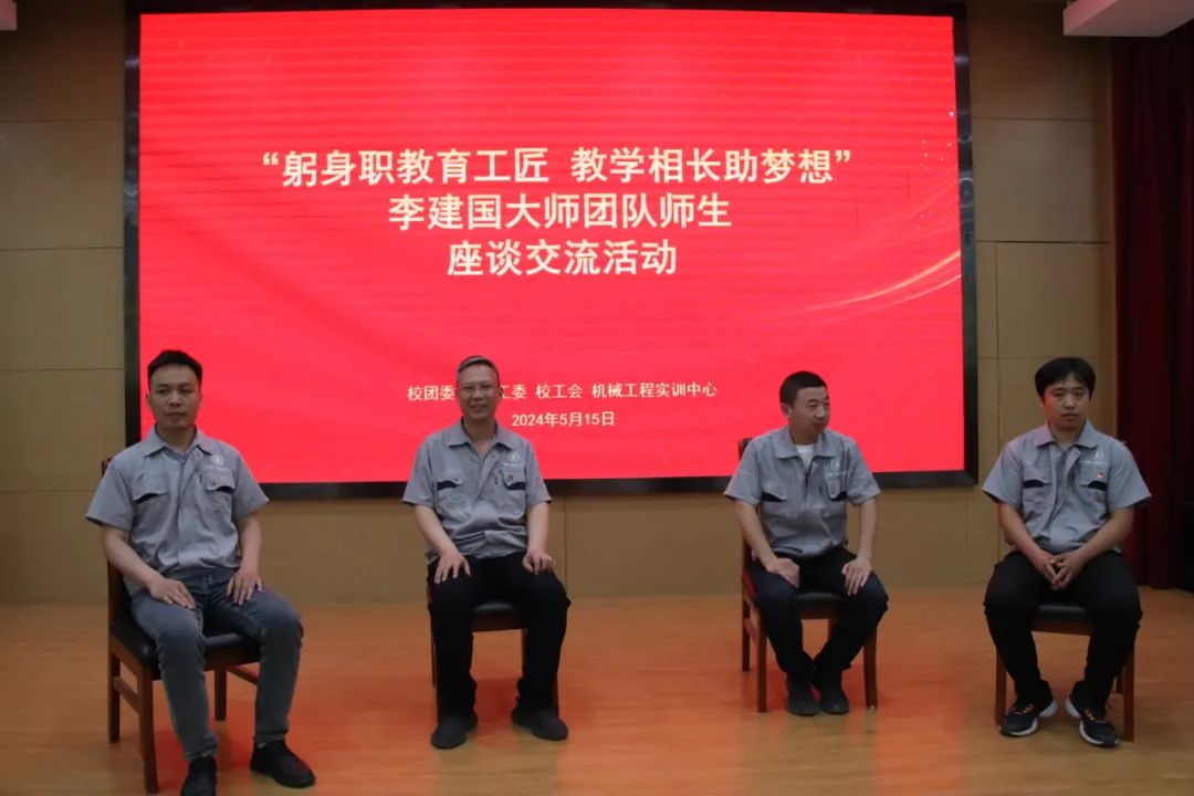 5月15日下午,由校团委、校关工委、校工会共同组织的“躬身职教育工匠 教学相长助梦想”师生座谈交流活动在东阶大讲堂举行。活动邀请到校工会兼职副主席、机械工程实训中心主任国家级技能大师,全国优秀教师,市关工委、教育系统关工委研学基地宣讲团成员李建国教授为同学们进行事迹分享,而后李老师和机械工程实训中心谢学浩、黄连宝、刘炜三位老师同时也是beat365官网优秀毕业生,与参会的同学们进行了交流,来自工匠精神实践营和各学院学生代表共二百余人参与其中,活动由校团委解濮瑜老师主持。