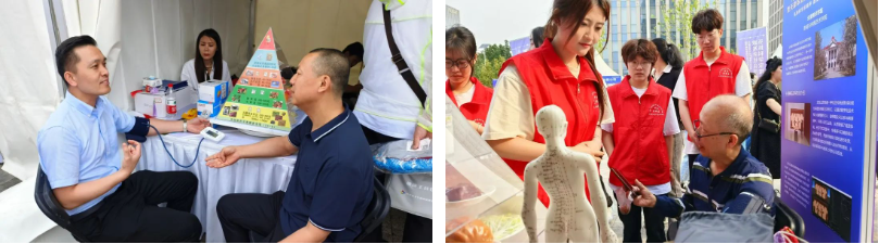 科普讲解员和学生们利用基地的智能设备开展助老服务,为老人们测量血压、认识保健穴位等等,提升学生科普志愿服务能力,带领现场青少年和老年人更好地认识生命和开展日常照护保健。